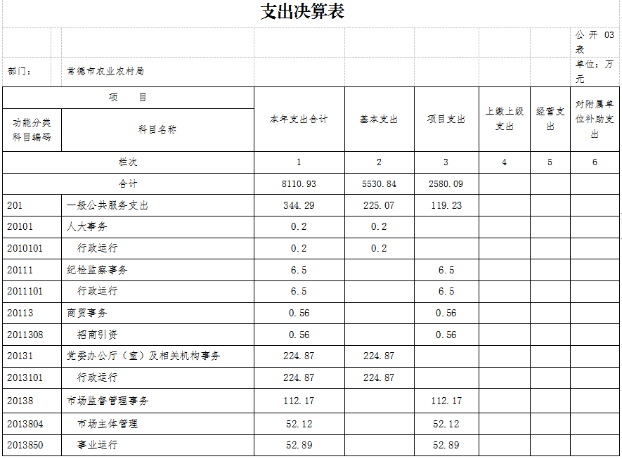 2021年度支出合计8110.93万元,其中:基本支出5530.84万元,占68.19%;项目支出2580.09万元,占31.81%;上缴上级支出0万元,占0%;经营支出0万元,占0%;对附属单位补助支出0万元,占0%。