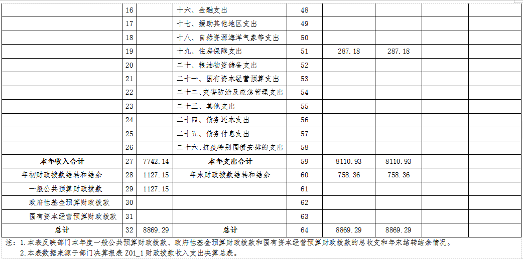 2021年度收入总计8869.29万元。与上年相比,增加679.62万元,增长8.3%,主要是因为人员待遇调标,财政拨款人员经费增加。支出总计8110.93万元,与上年相比,增加1052.6万元,增长14.9%,主要是因为发放的工资、奖金上浮及新增模范机关奖励,加快了以前年度结转项目资金的使用进度。
