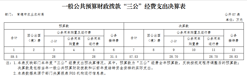 七、一般公共预算财政拨款“三公”经费支出决算表