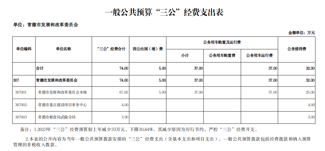 常德市发展和改革委员会2023年一般公共预算“三公”经费支出情况表