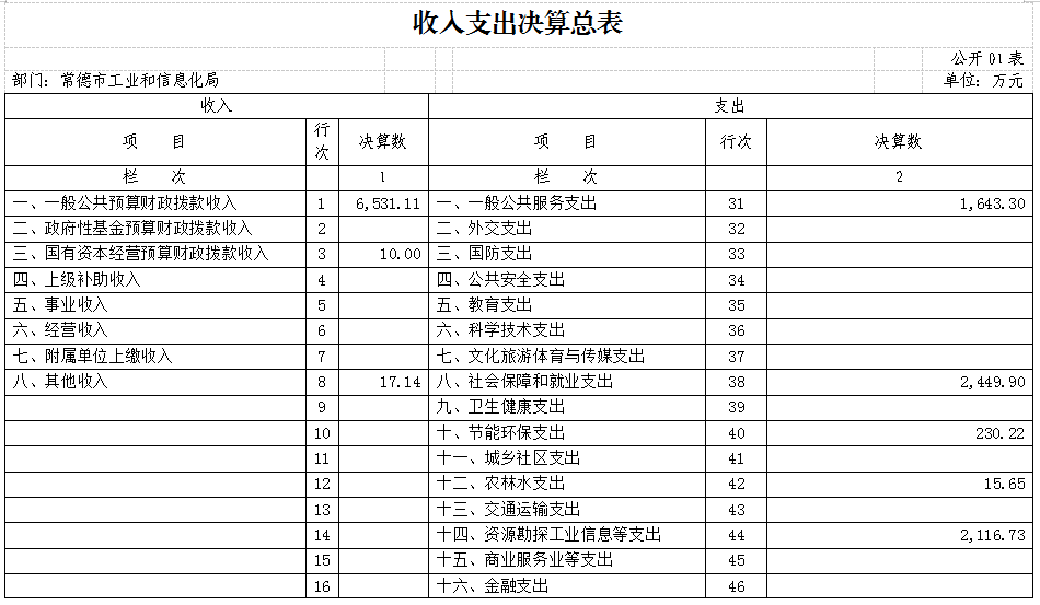 一、收入支出决算总表