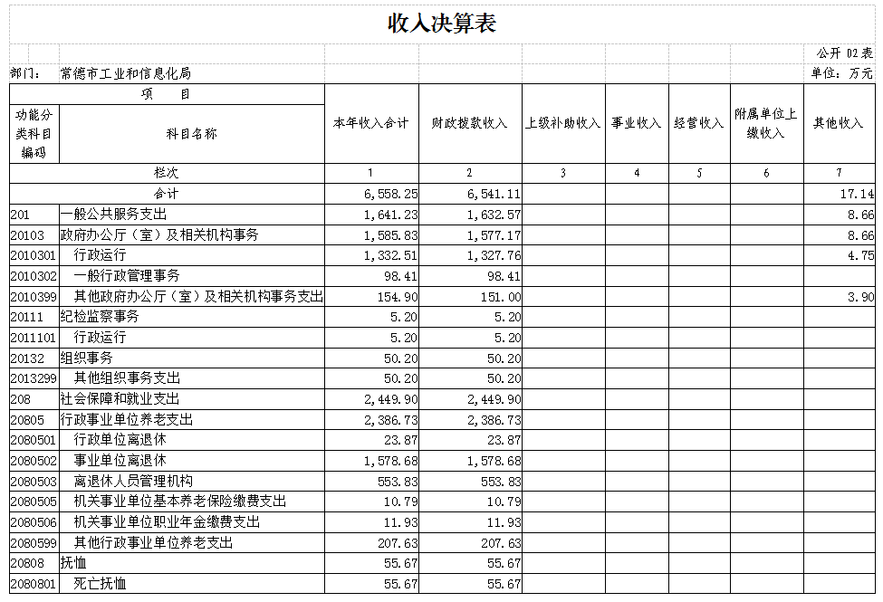 二、收入决算表