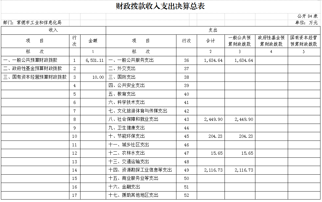 四、财政拨款收入支出决算总表