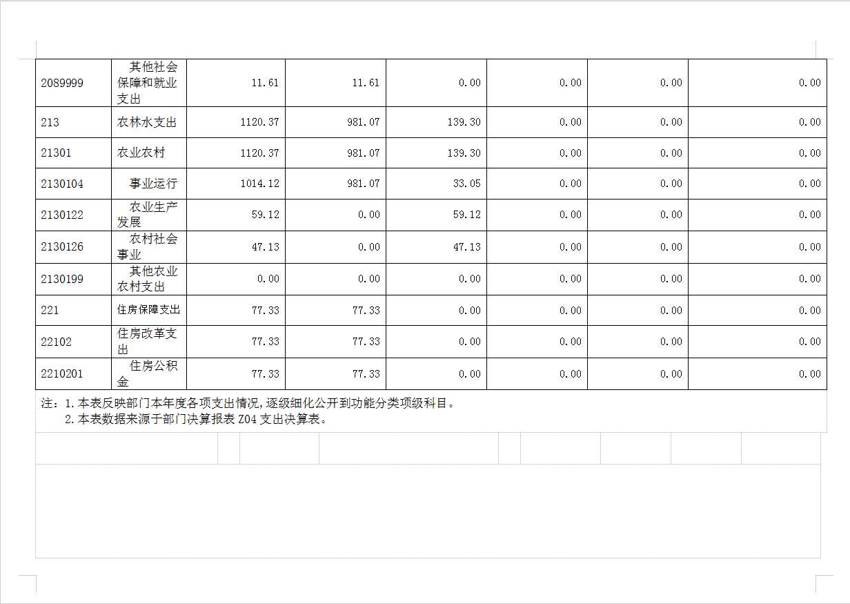 2022年度财政拨款支出1777.45万元,主要用于以下方面:社会保障和就业(类)支出579.75万元,占32.62%;农林水支出(类)支出1120.37万元,占63.03%;住房保障支出(类)支出77.33万元,占4.35%。