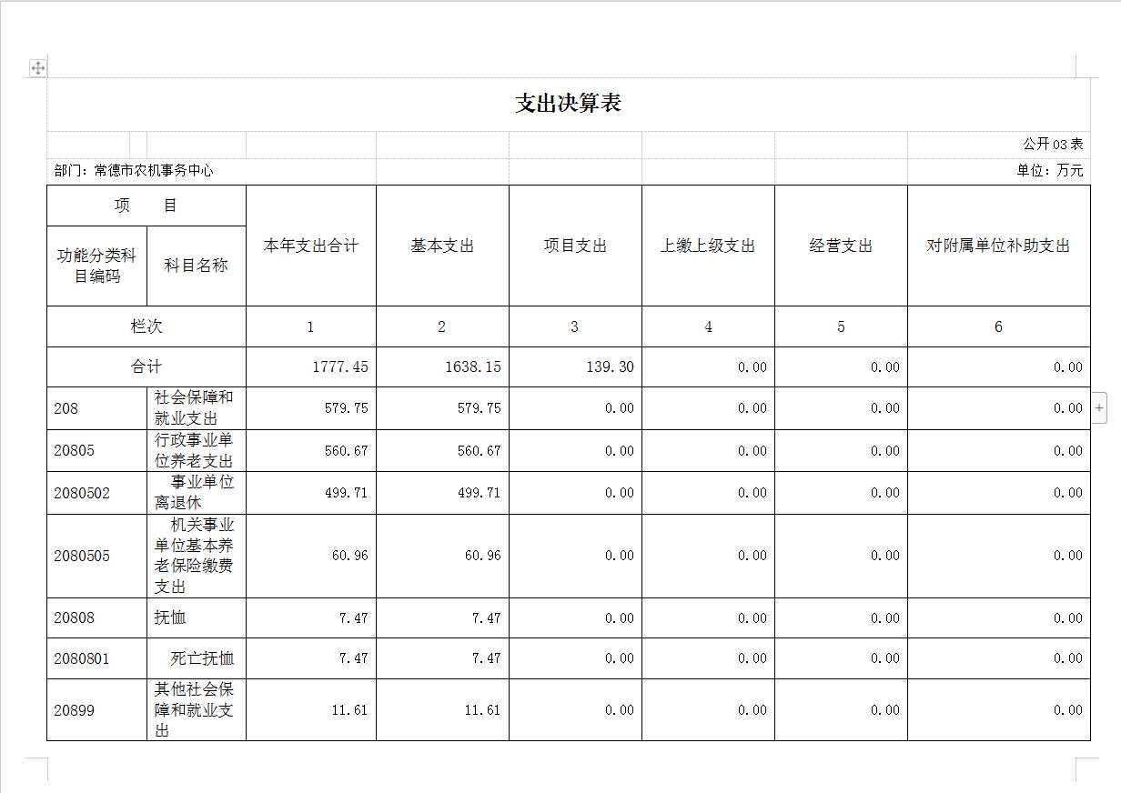 一般公共预算本年支出合计1777.45万元,其中:基本支出1638.15万元,占92.16%;项目支出139.30万元,占7.84%。