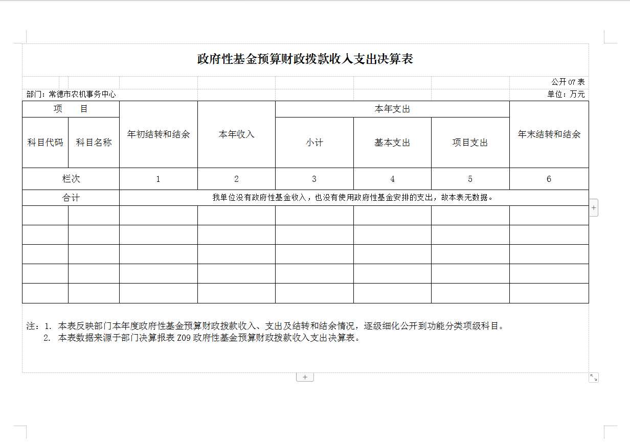 常德市农机事务中心本级及其二级机构均无政府性基金预算支出