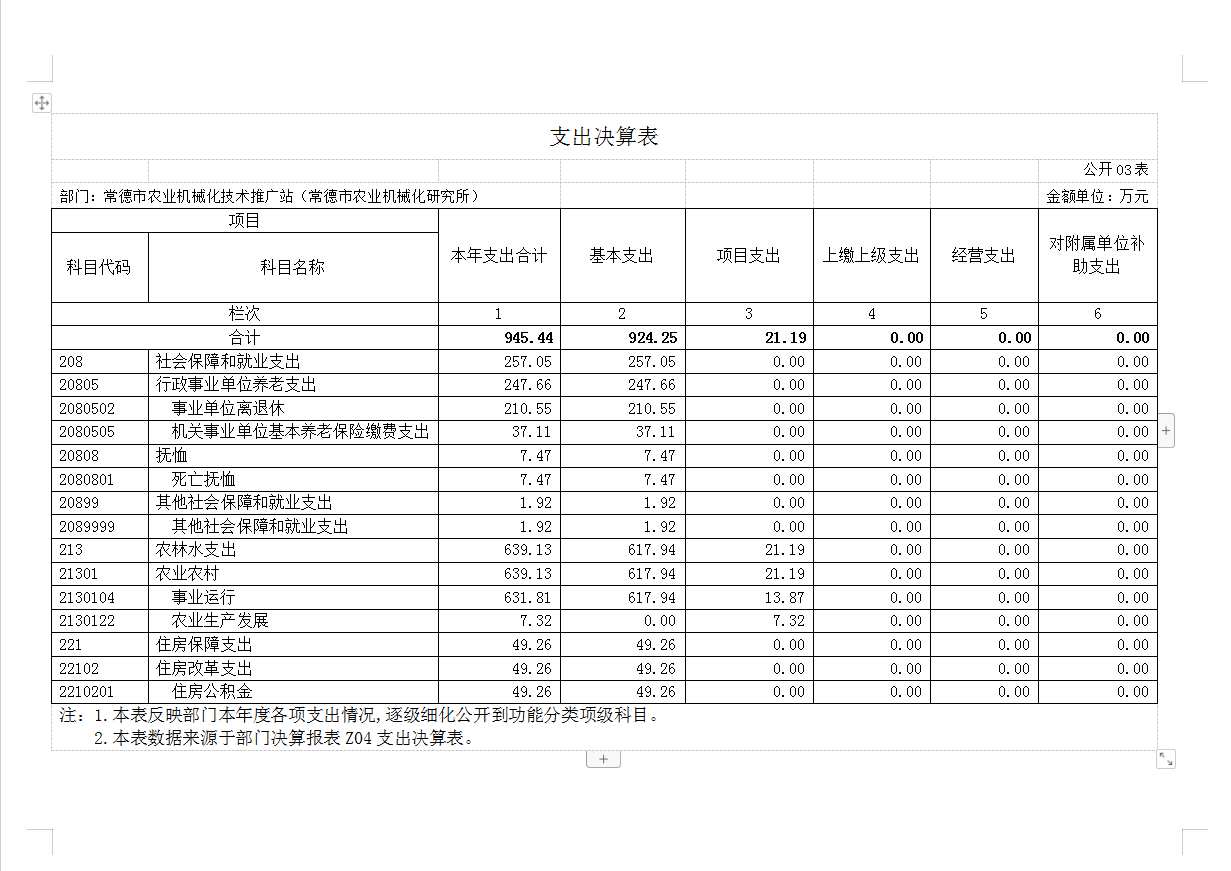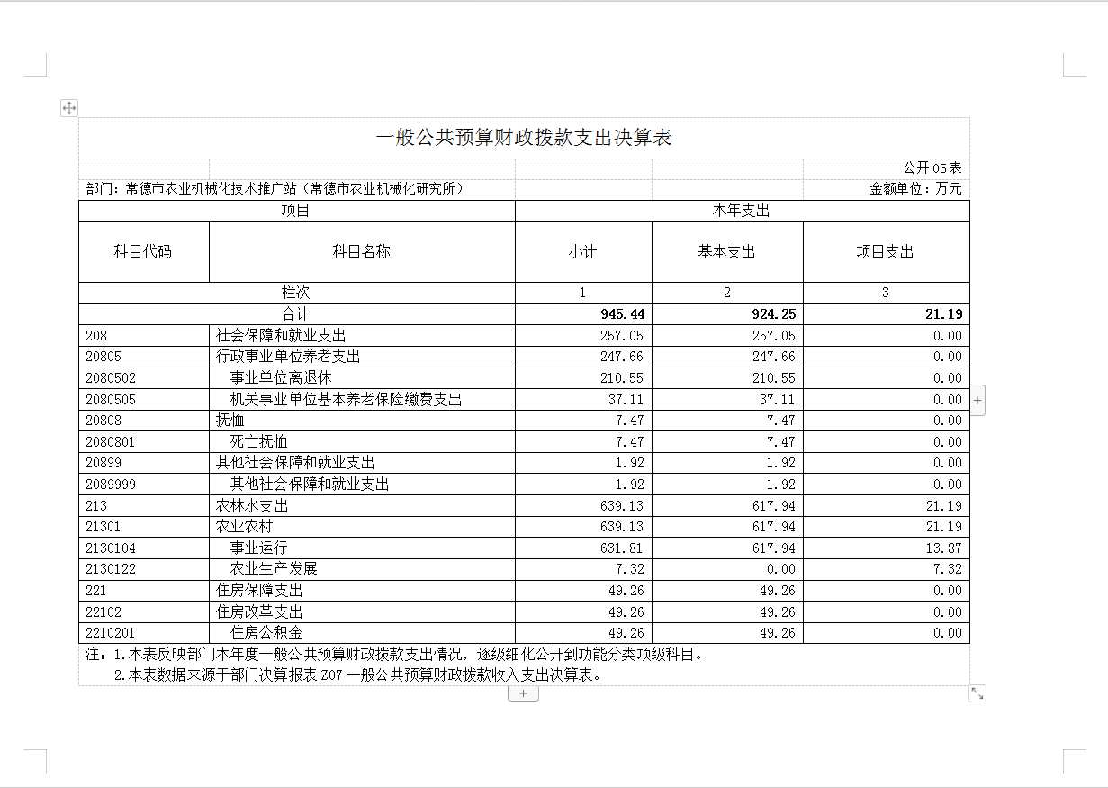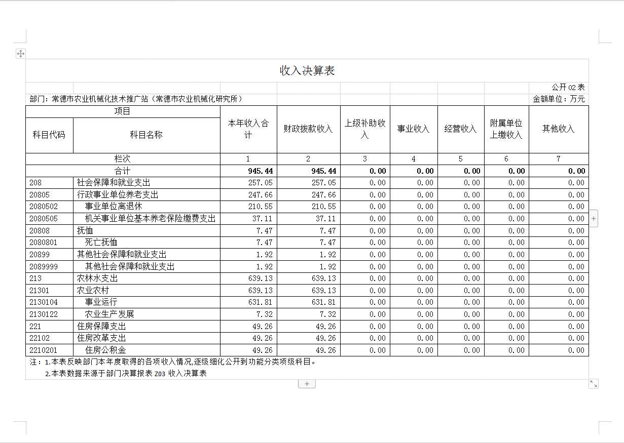常德市农业机械化技术推广站2022年决算公开