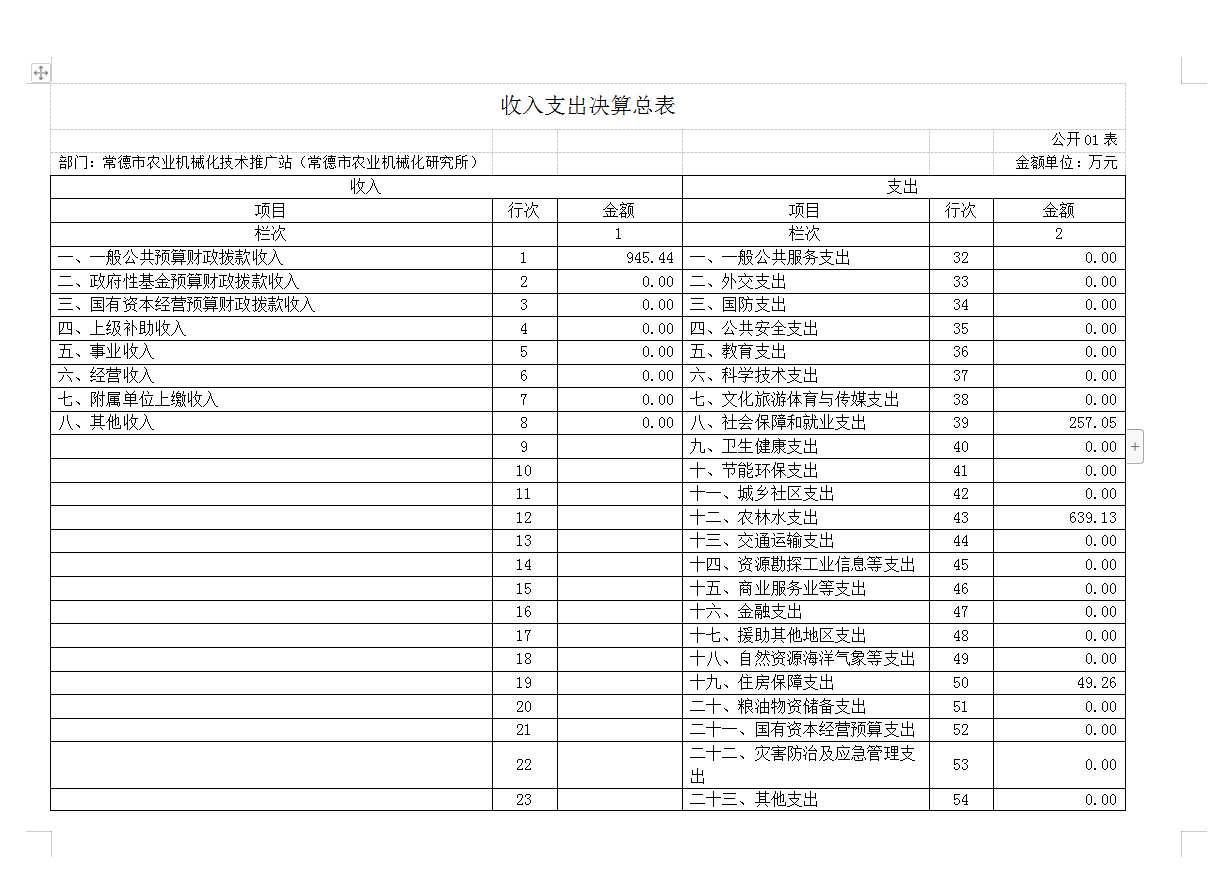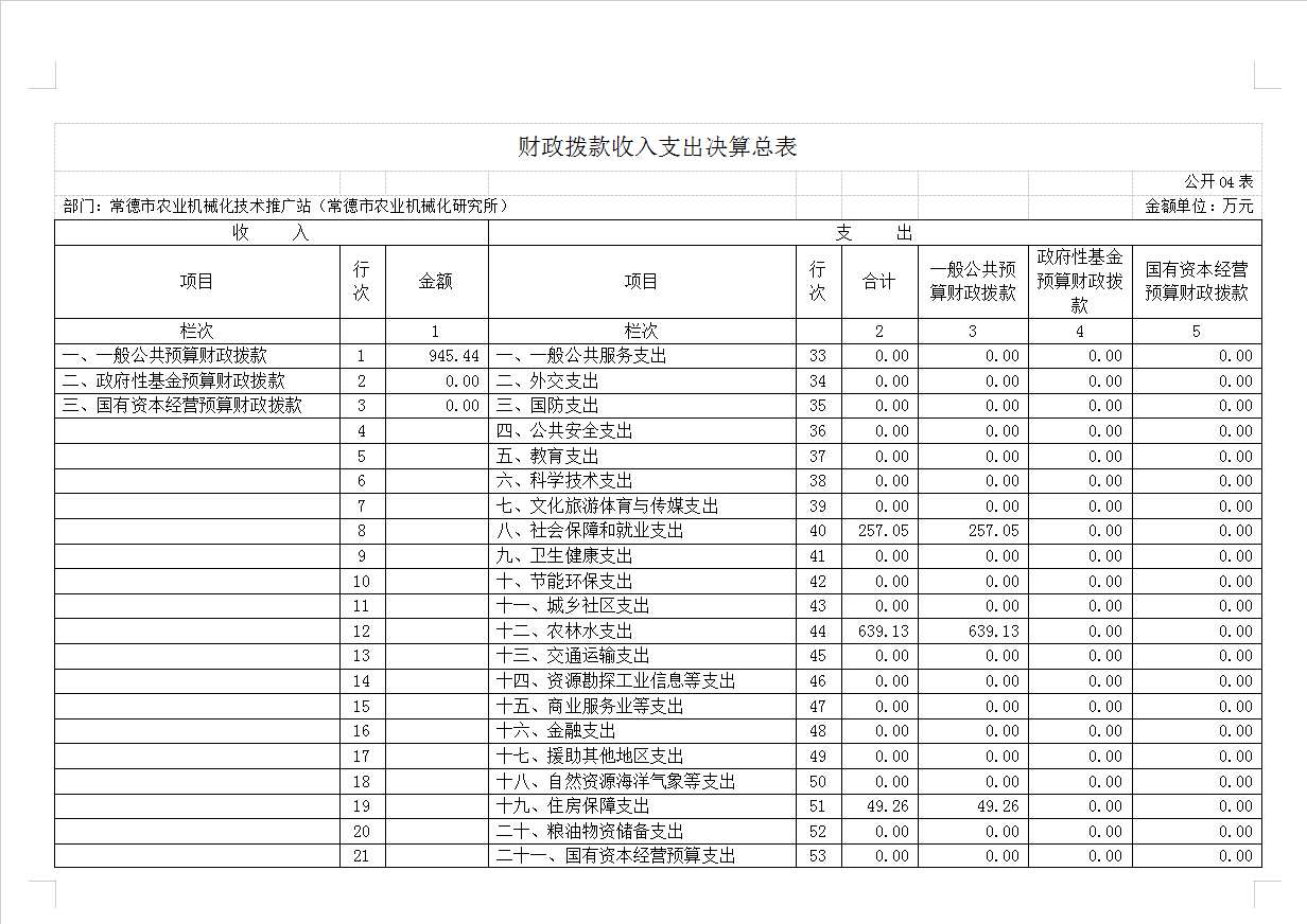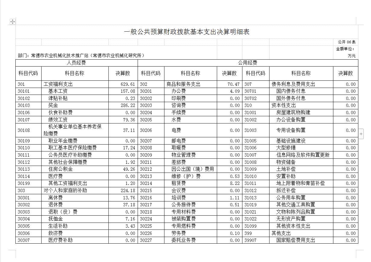 常德市农业机械化技术推广站2022年决算公开