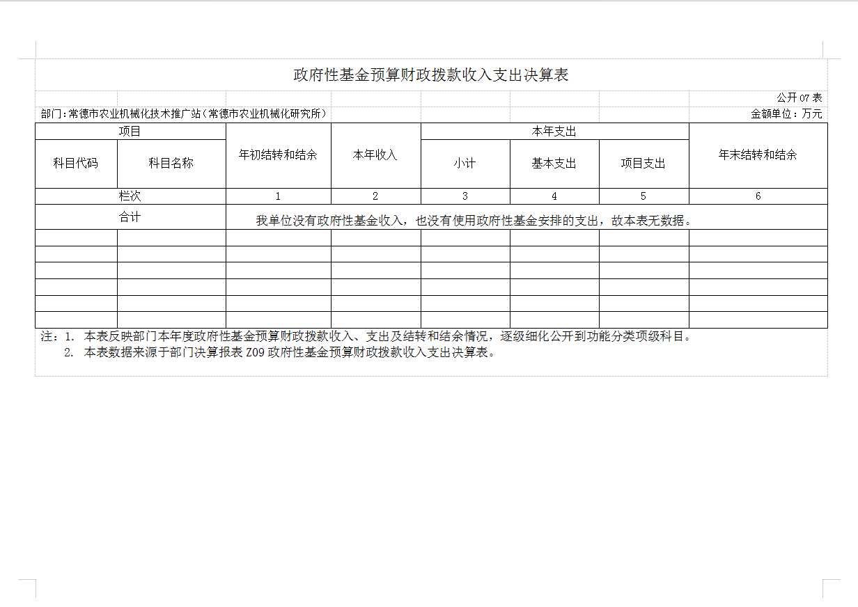 常德市农业机械化技术推广站(常德市农业机械化研究所)无政府性基金预算支出
