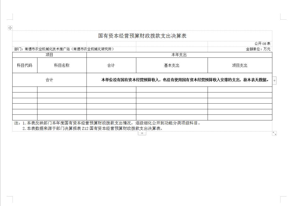 常德市农业机械化技术推广站(常德市农业机械化研究所)无国有资本经营预算支出