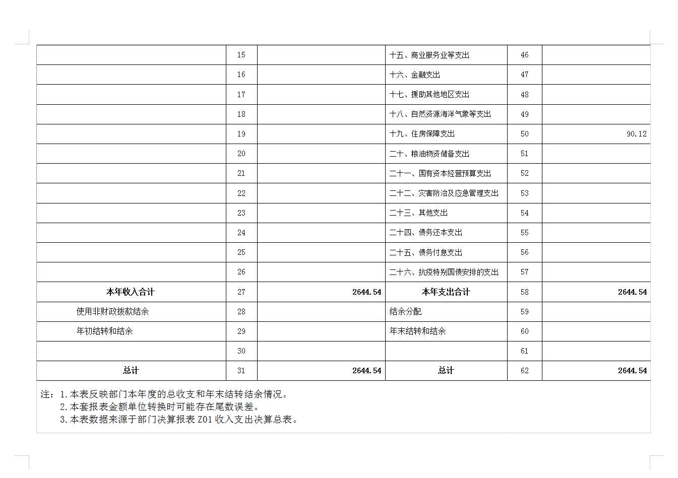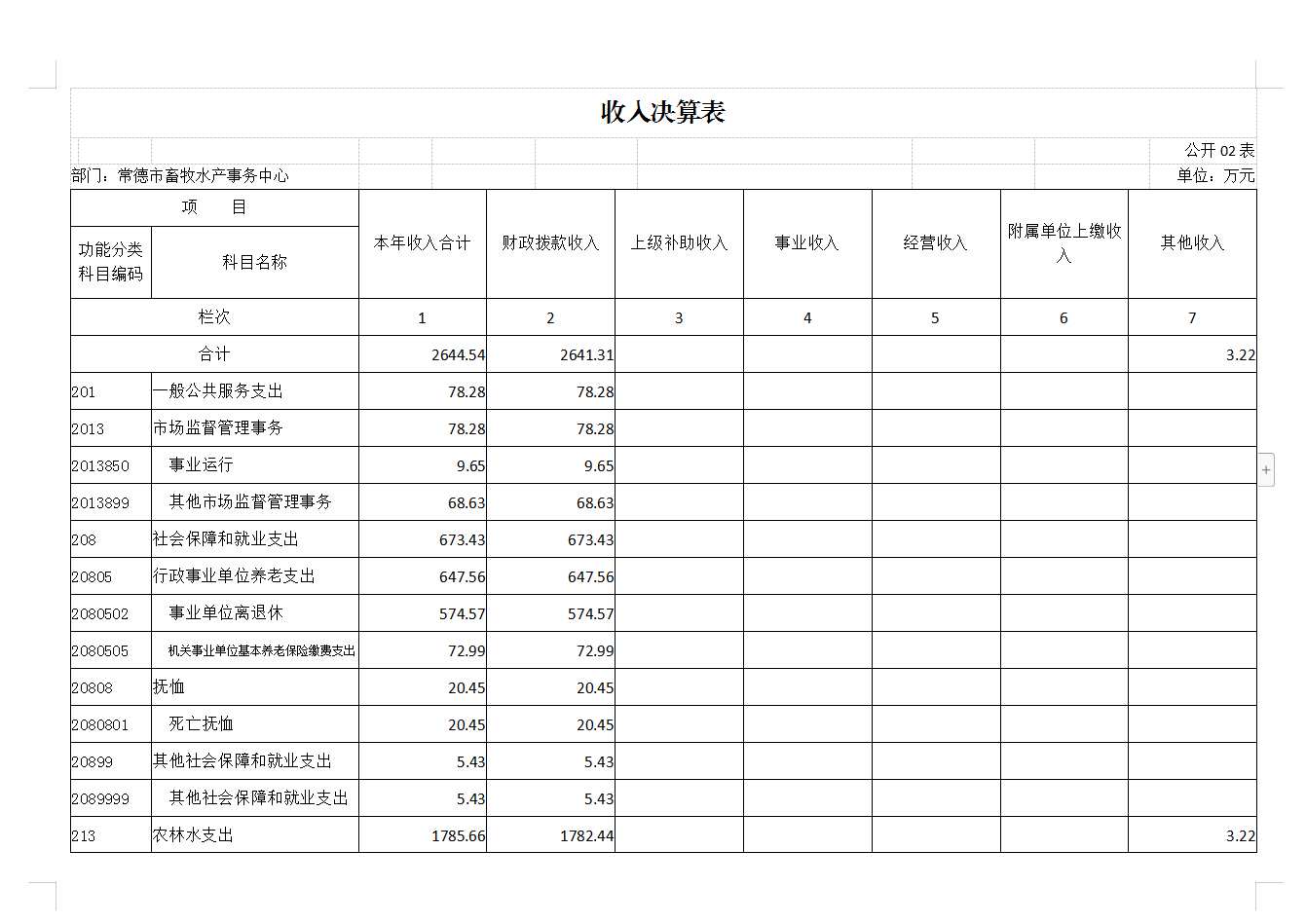 2022年度收入合计2644.54万元,其中:财政拨款收入2641.31万元,占99.88%;上级补助收入0万元,占0%;事业收入0万元,占0%;经营收入0万元,占0%;附属单位上缴收入0万元,占0%;其他收入3.22万元,占0.12%。