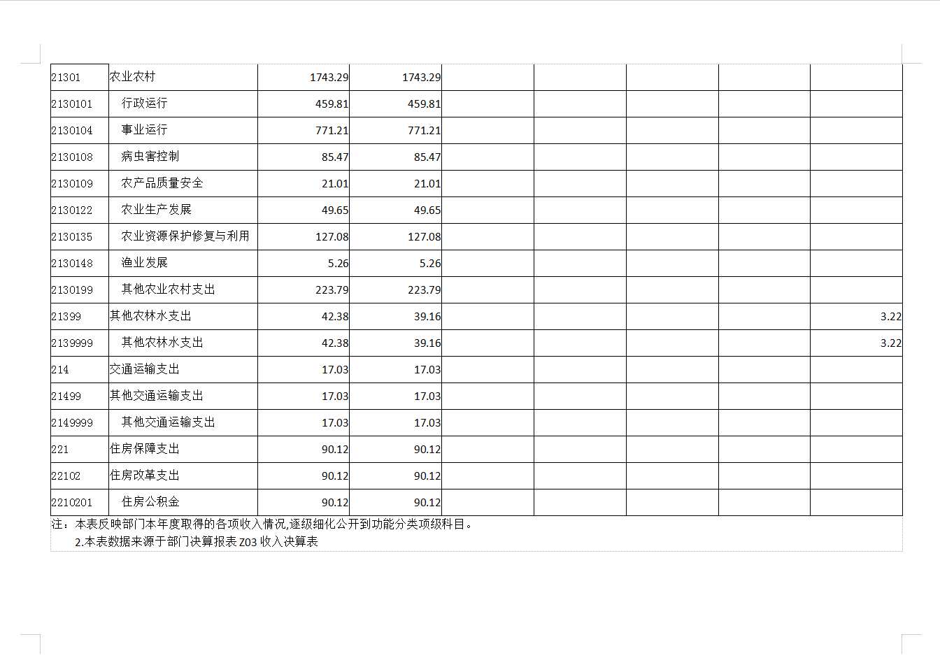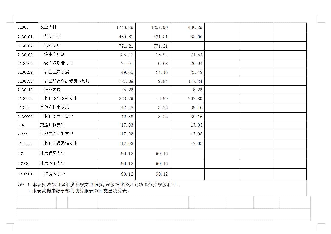 7、农林水支出(类)农业农村(款)行政运行(项)。