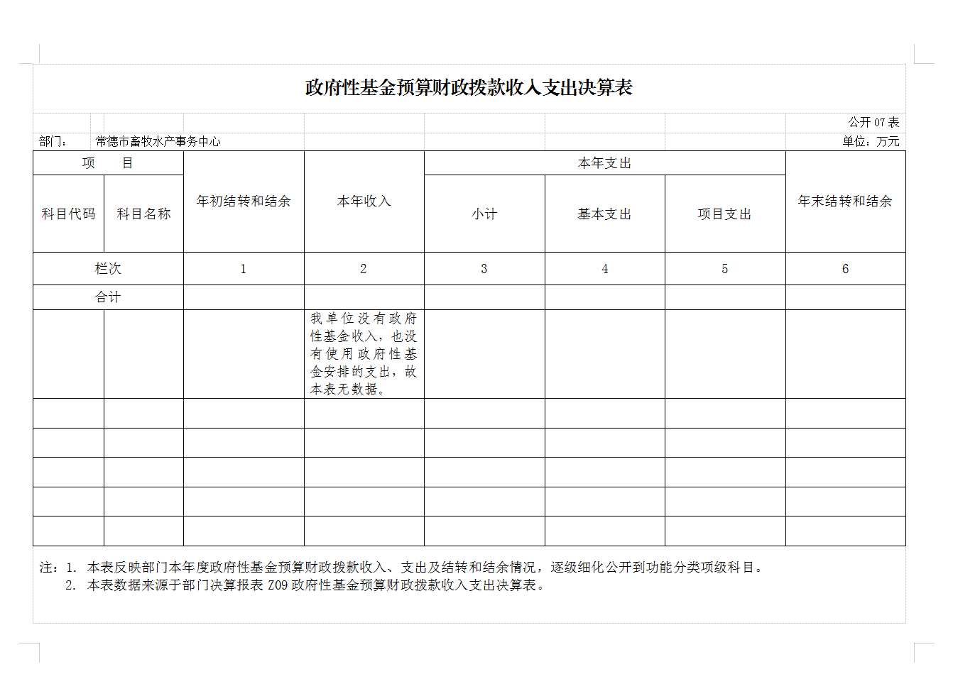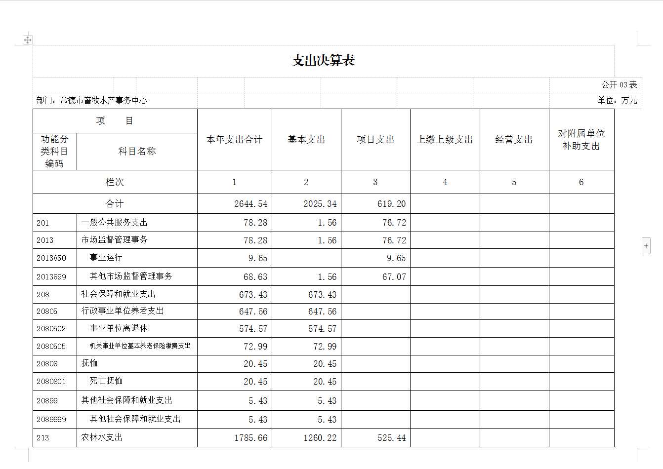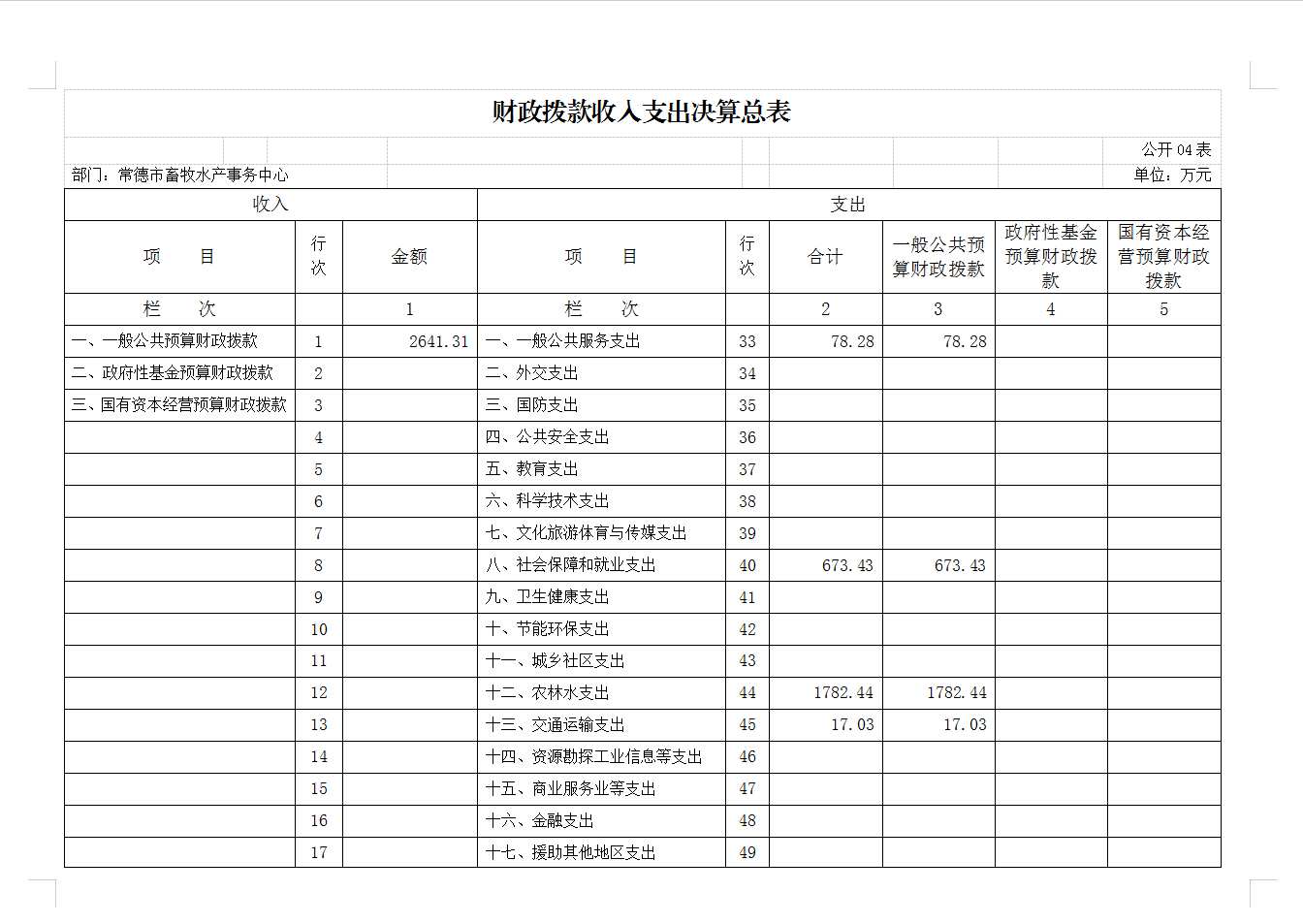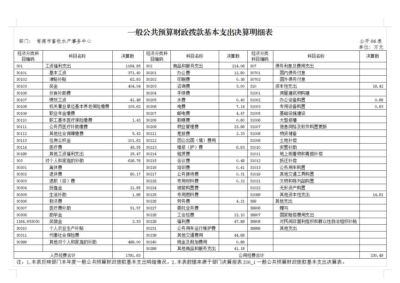 (二)决算单位构成。常德市畜牧水产事务中心单位2022年部门决算汇总公开单位构成包括:常德市畜牧水产事务中心单位本级以及市动物疫病预防控制中心、市畜禽水产品质量安全检验检测中心、市渔政站(市渔港安全监督站)、市动物卫生监督所,市水生动物资源监测与病害防控中心。