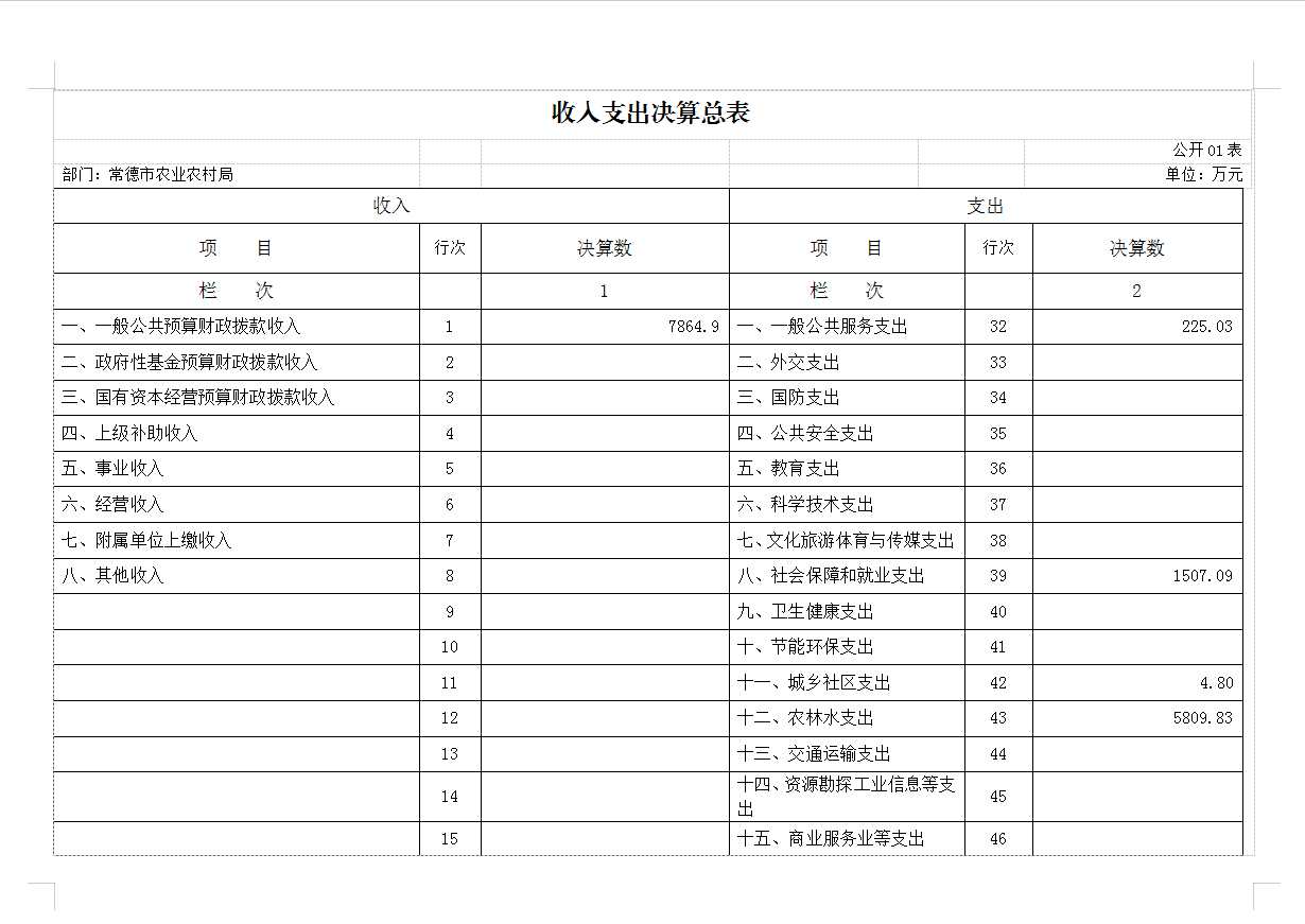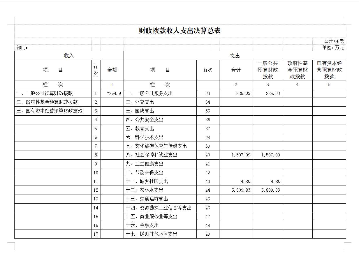 部门决算表