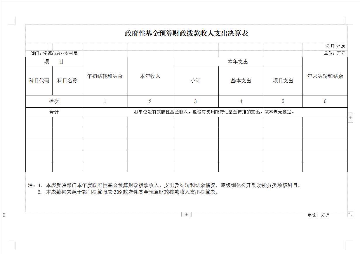 七、政府性基金预算财政拨款收入支出决算表