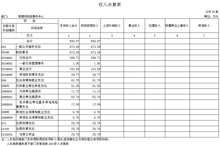 2022年度收入合计580.57万元,其中:财政拨款收入580.57万元,占100%;上级补助收入0万元,占0%;事业收入0万元,占0%;经营收入0万元,占0%;附属单位上缴收入0万元,占0%;其他收入0万元,占0%。