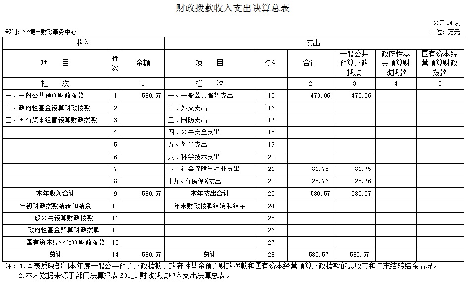 四、财政拨款收入支出决算总表