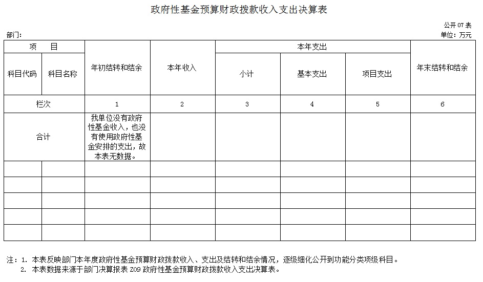 七、政府性基金预算财政拨款收入支出决算表