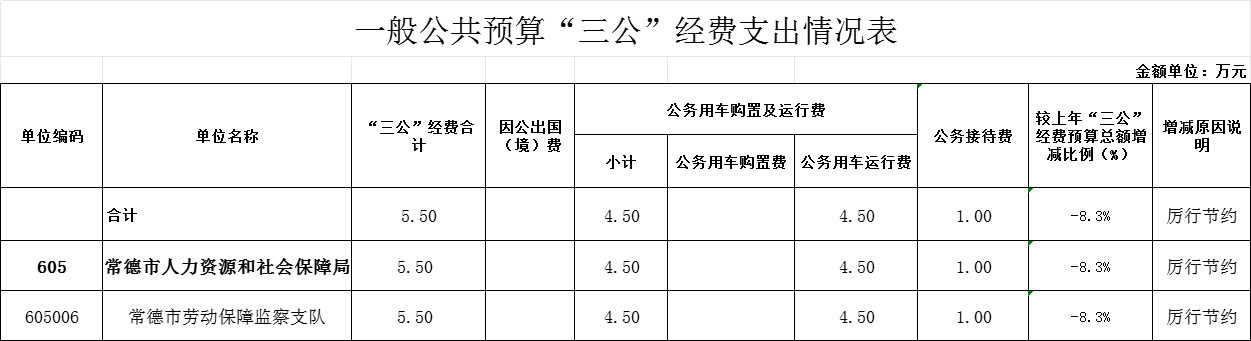 常德市劳动监察支队2024年一般公共预算“三公”经费支出表