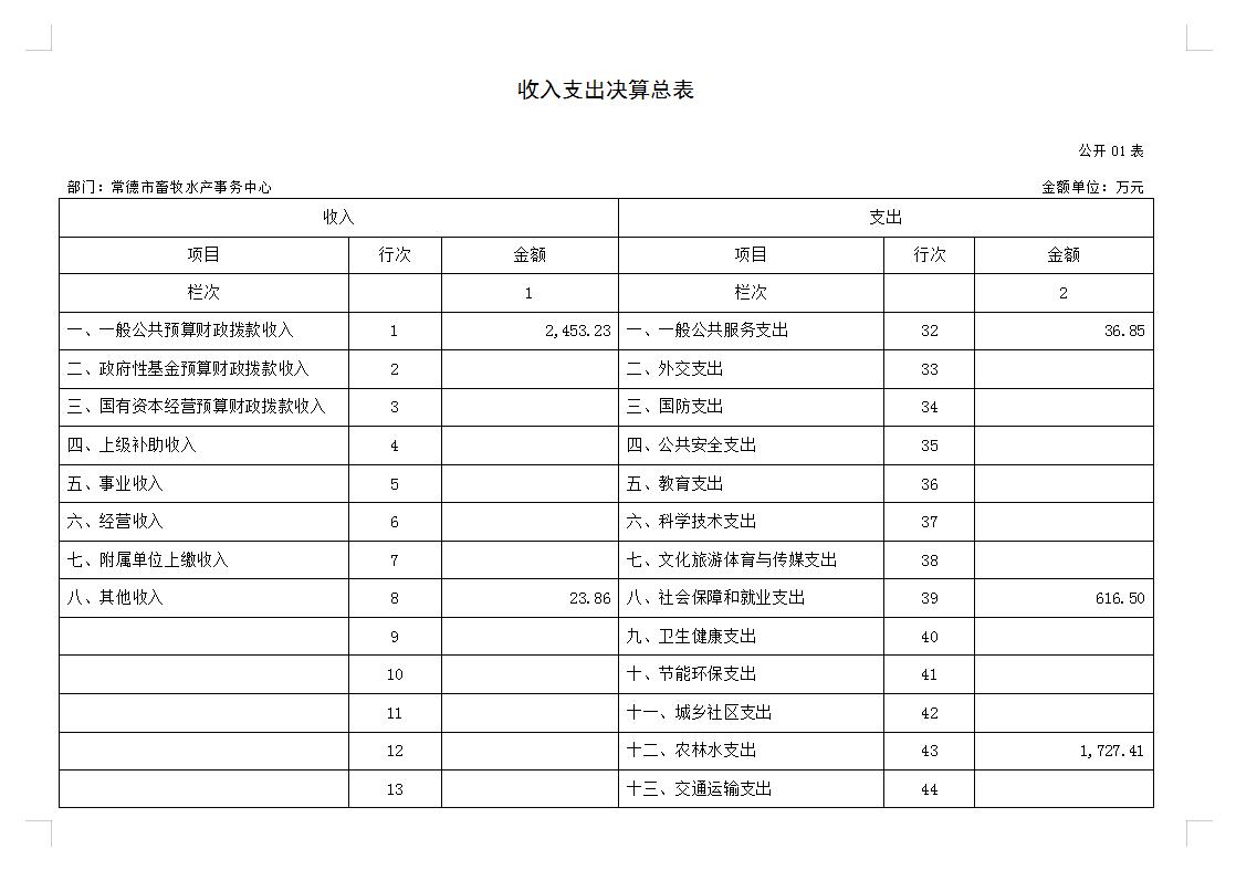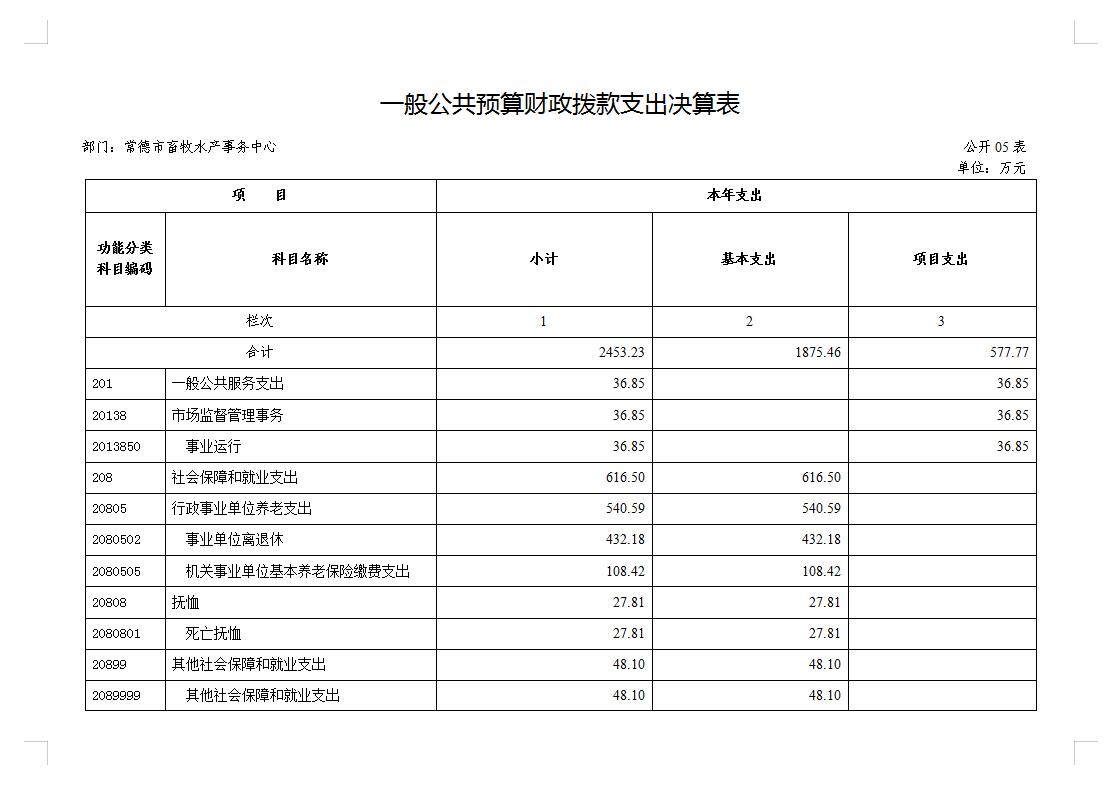 2023年度常德市畜牧水产事务中心部门整体支出绩效自评报告