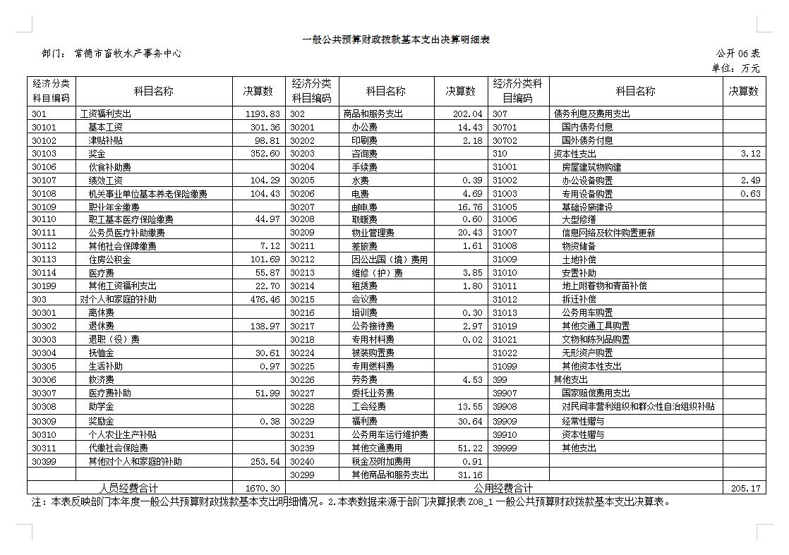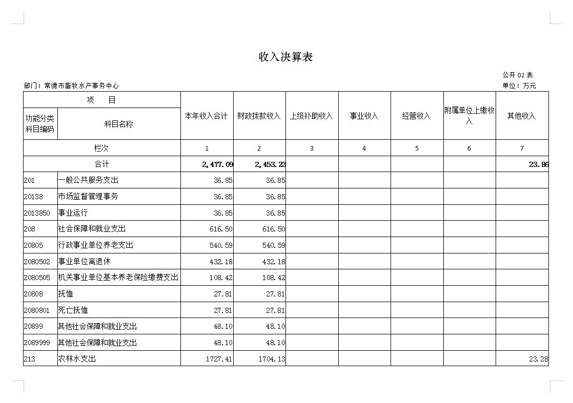 (二)决算单位构成。常德市畜牧水产事务中心单位2023年部门决算汇总公开单位构成包括:常德市畜牧水产事务中心单位本级以及市动物疫病预防控制中心、市畜禽水产品质量安全检验检测中心、市渔政站(市渔港安全监督站)、市动物卫生监督所,市水生动物资源监测与病害防控中心。