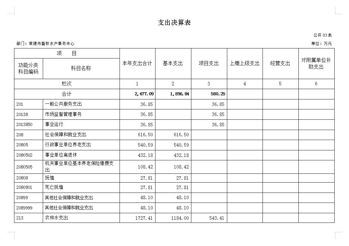 2023年度支出合计2477.09万元,其中:基本支出1896.84万元,占77%;项目支出580.25万元,占23%;上缴上级支出0万元,占0%;经营支出0万元,占0%;对附属单位补助支出0万元,占0%。