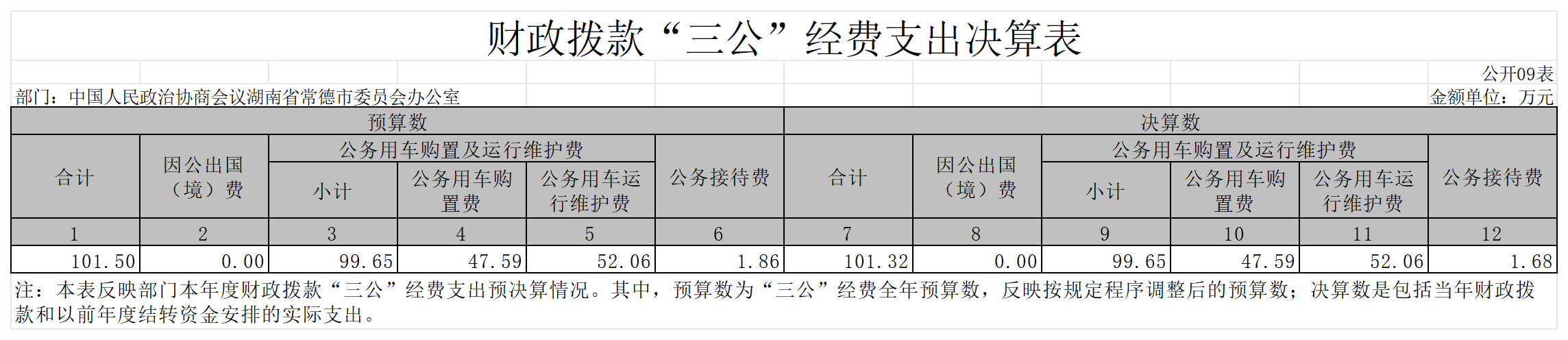 “三公”经费财政拨款支出预算为101.5万元,支出决算为101.32万元,完成预算的99.82%,其中:
