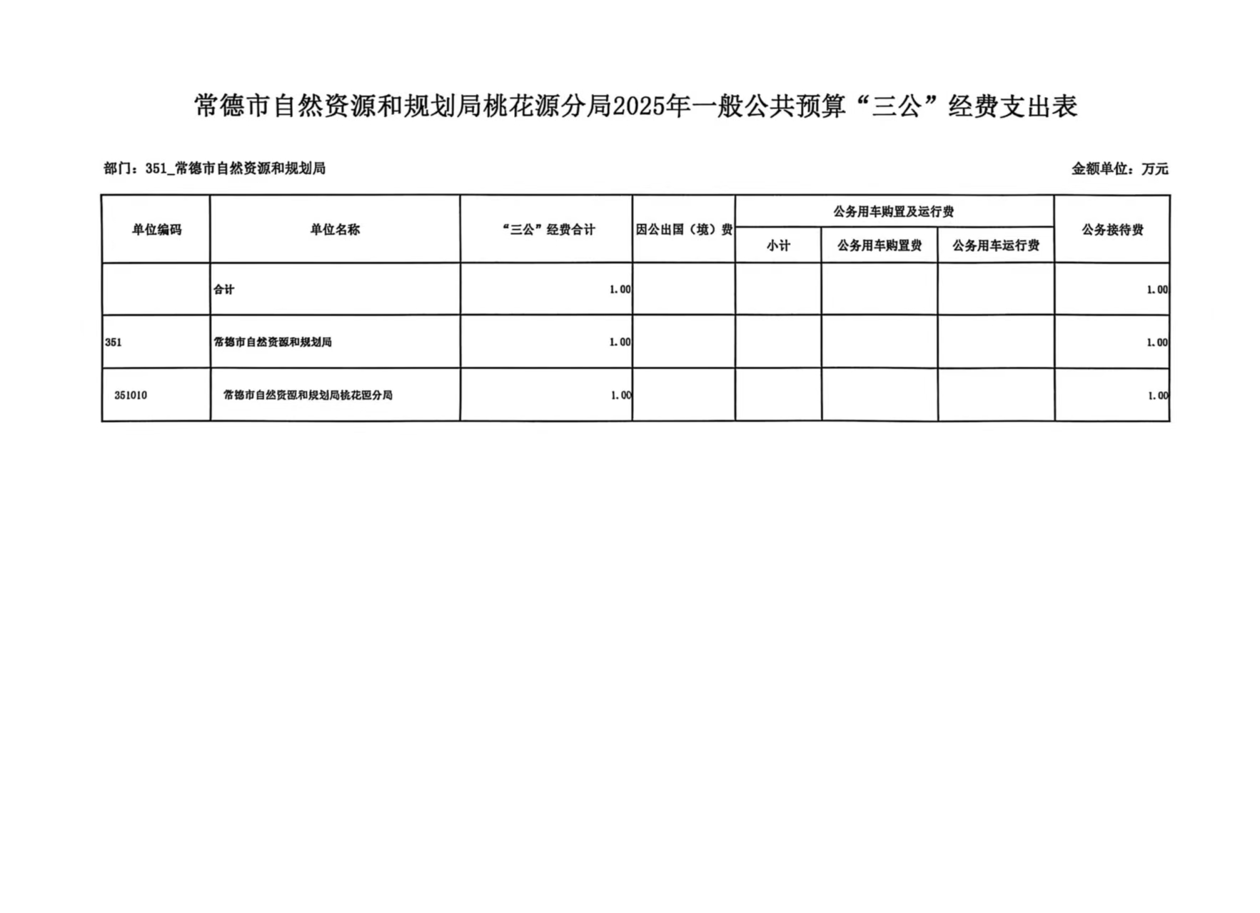 常德市自然资源和规划局桃花源分局2025年一般公共预算“三公”经费支出表