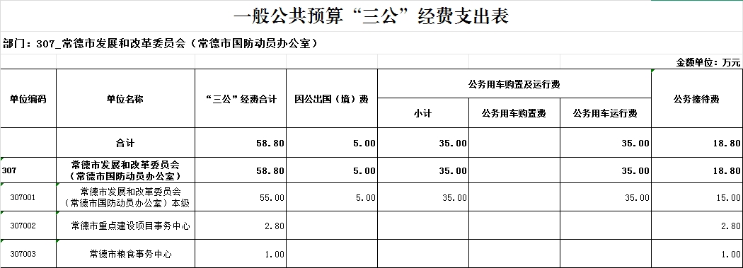常德市发展和改革委员会(常德市国防动员办公室)2025年一般公共预算“三公”经费支出情况表