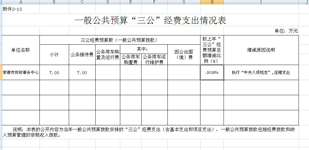 常德市财政事务中心2020年“三公”经费预算公开