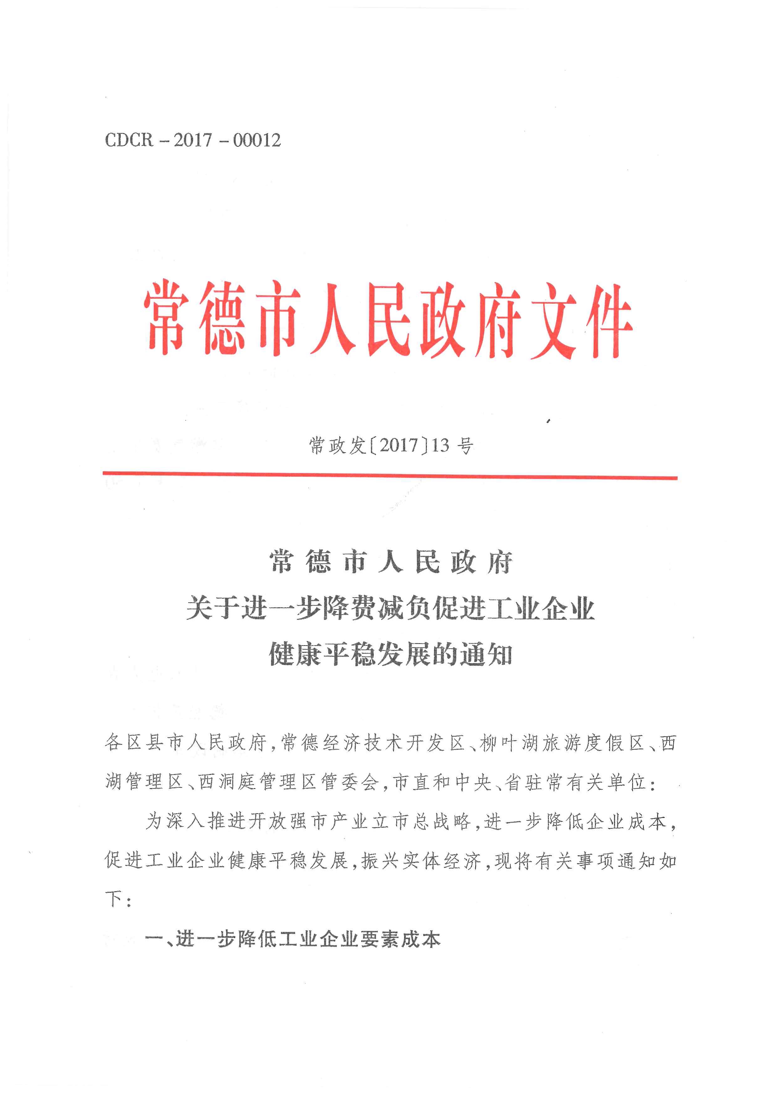 关于进一步降费减负促进工业企业平稳健康发展的通知