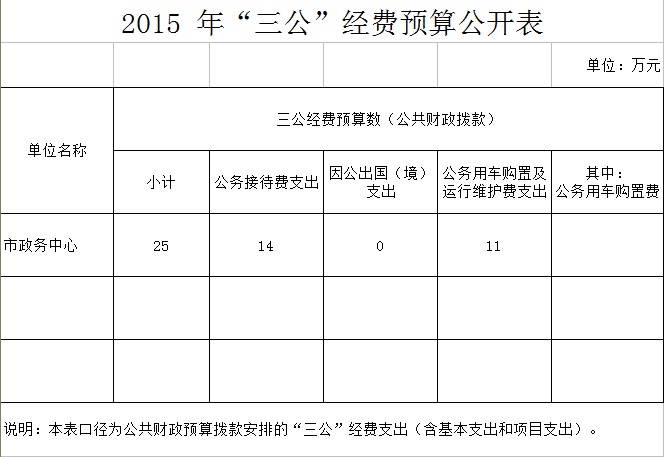 常德市政务中心2015年“三公”经费预算公开表