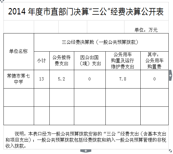 市七中2014年度市直部门决算“三公”经费决算公开表