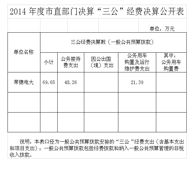 常德广播电视大学2014年度市直部门决算“三公”经费决算公开表