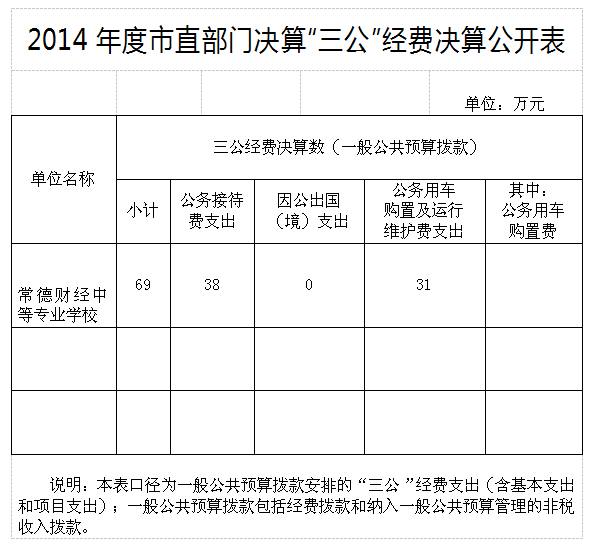 常德财经中等专业学校2014年度市直部门决算“三公”经费决算公开表
