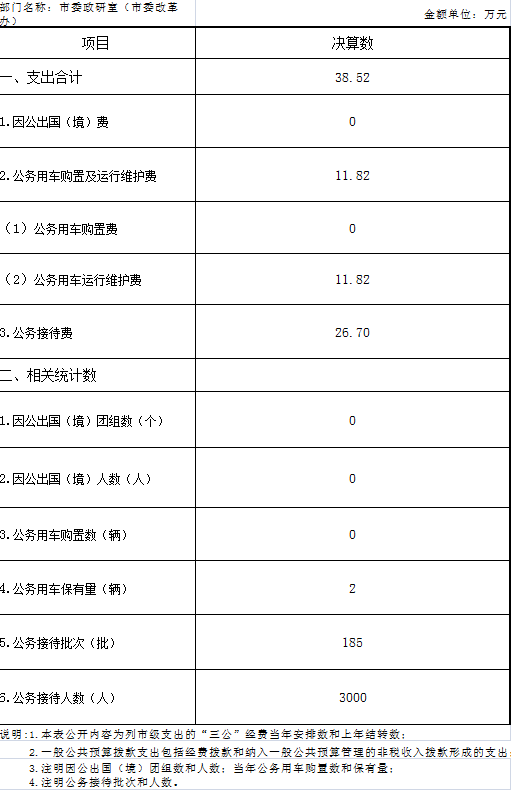 市委政研室(市委改革办)2016年“三公”经费决算公开表