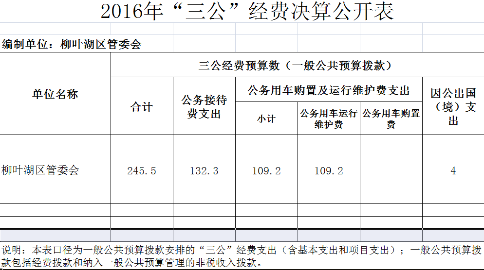 常德柳叶湖旅游度假区管委会2016年度“三公”经费决算公开