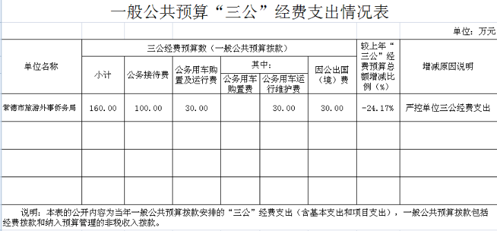 常德市旅游外事侨务局2019年度“三公”经费预算公开表