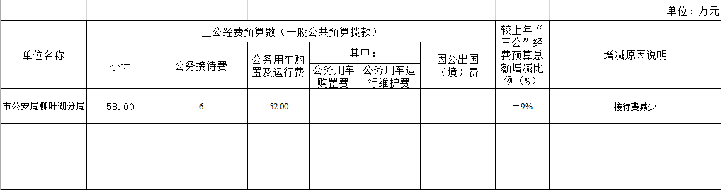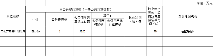 常德市公安局柳叶湖分局2019年“三公” 经费支出情况表