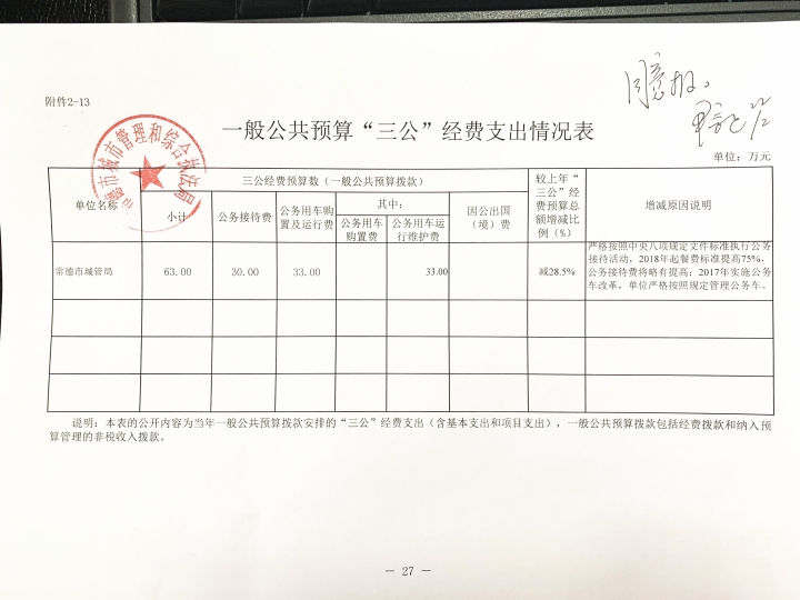 常德市城市管理和综合执法局2019年“三公”经费预算公开表