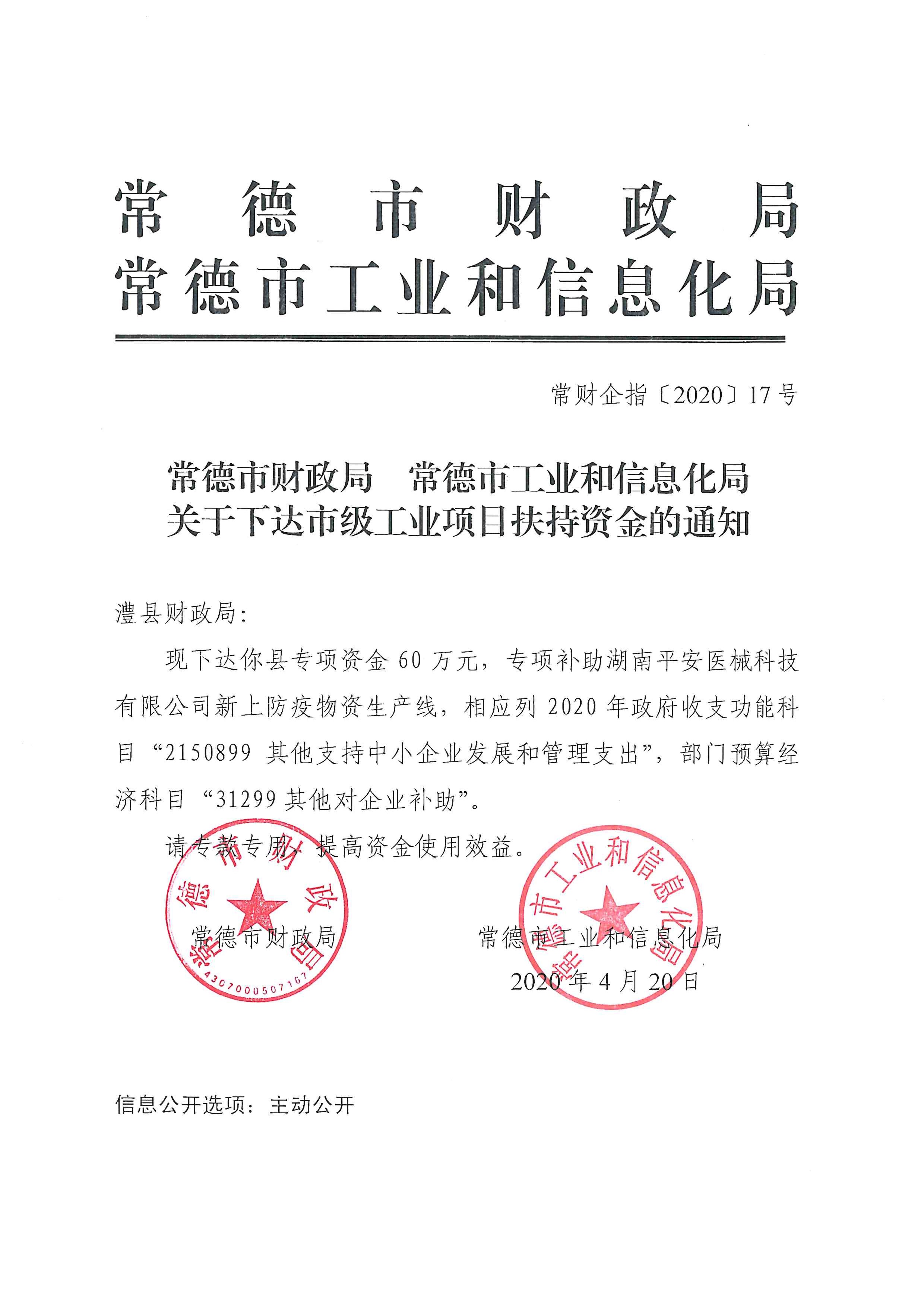 常德市财政局 常德市工业和信息化局关于下达市级工业项目扶持资金的通知