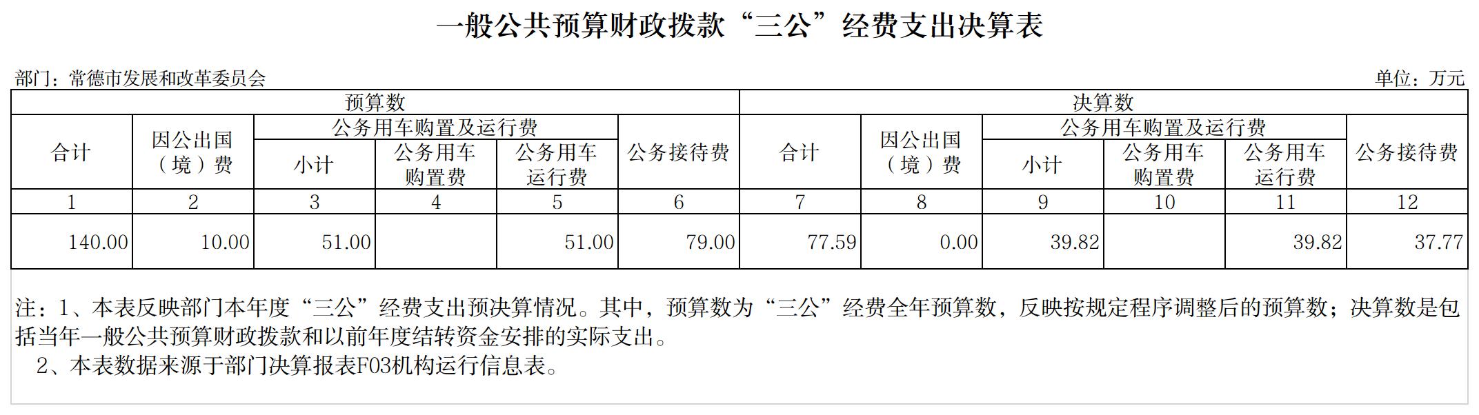 常德市发展和改革委员会2020年一般公共预算“三公”经费支出情况决算表