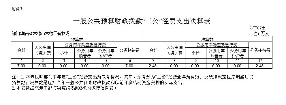 常德市常德国有林场2020年一般公共预算财政拨款“三公”经费支出决算表