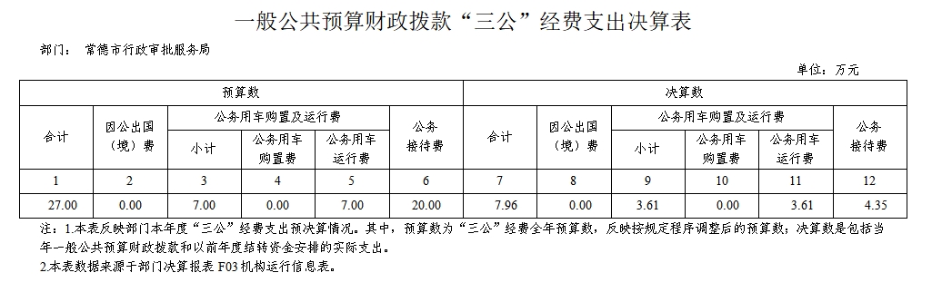 常德市行政审批服务局2022年一般公共预算财政拨款“三公”经费支出决算表