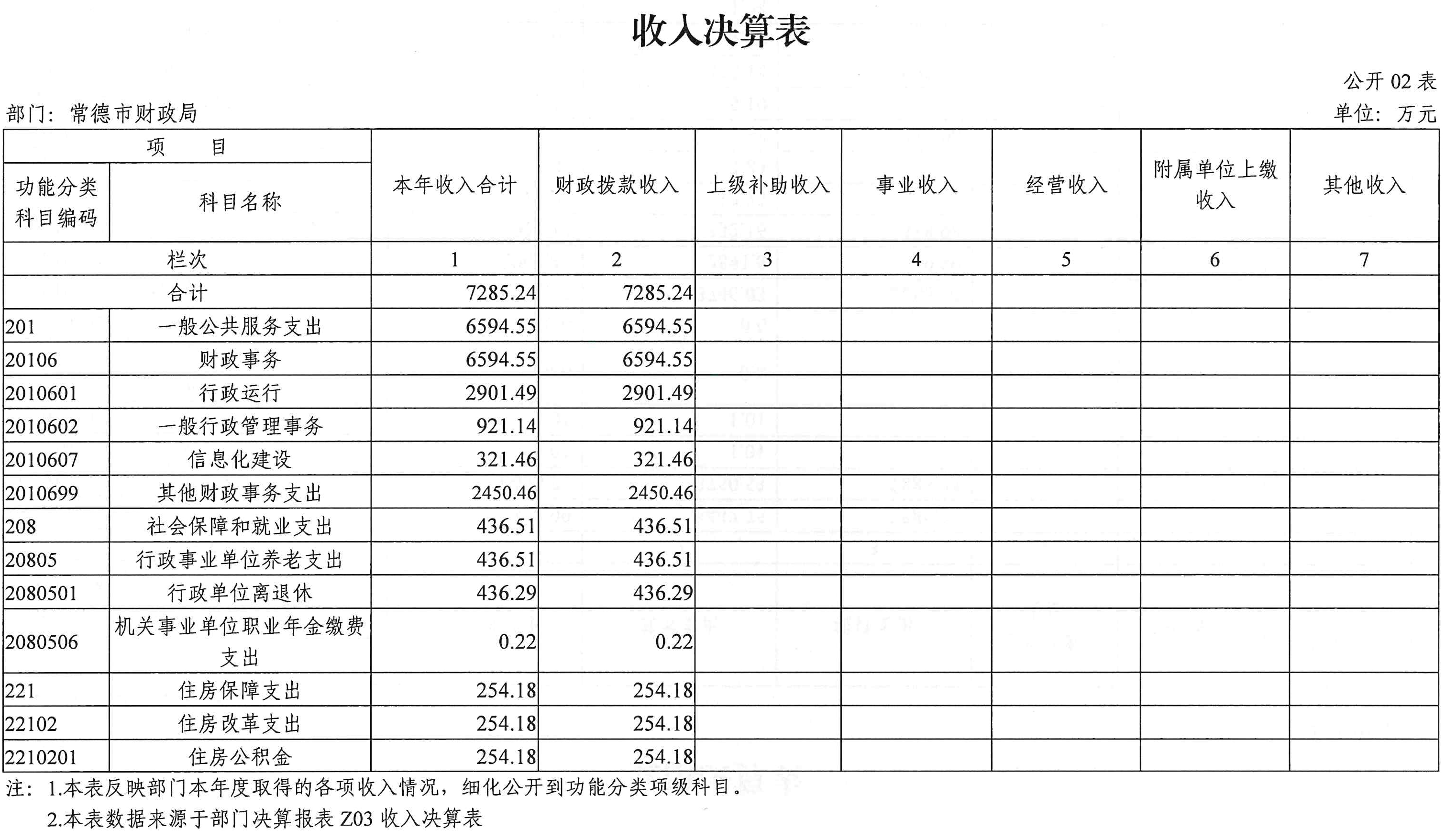 二、收入决算表