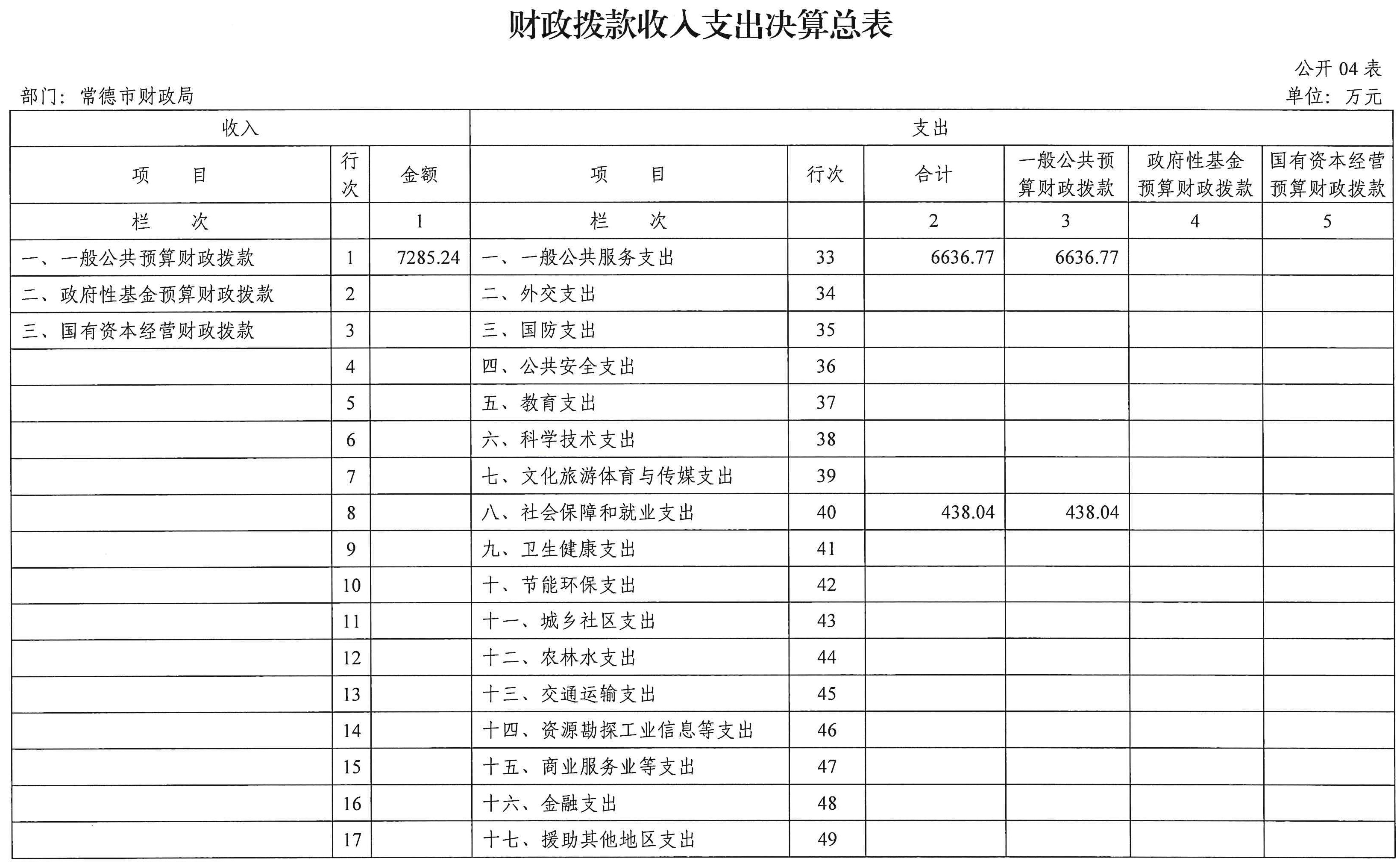 四、财政拨款收入支出决算总表