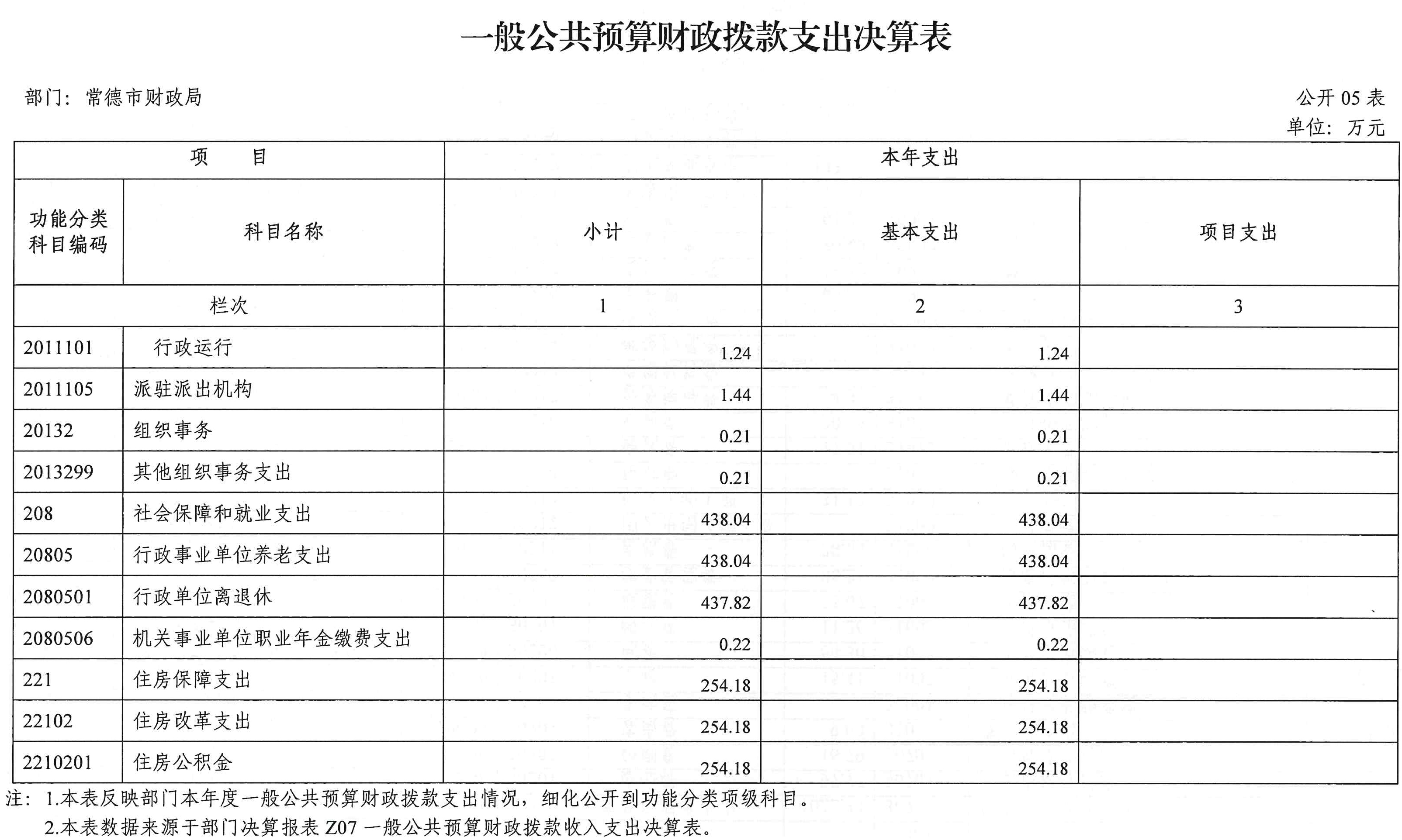 五、一般公共预算财政拨款支出决算表