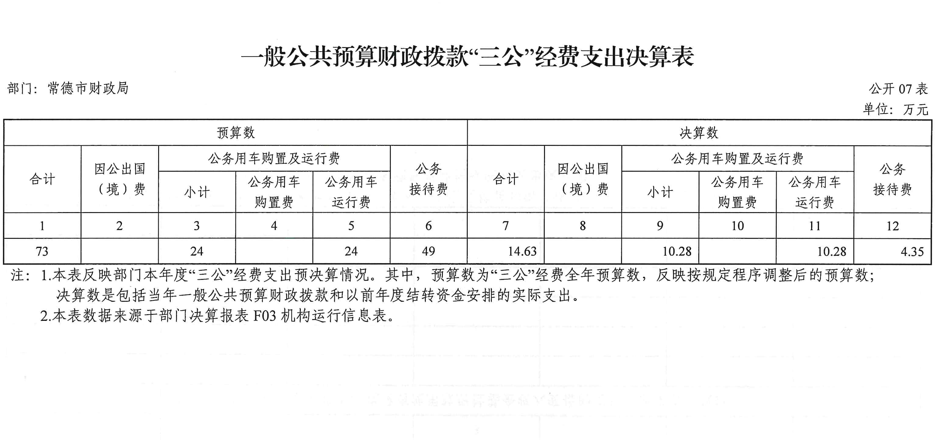 七、一般公共预算财政拨款“三公”经费支出决算表