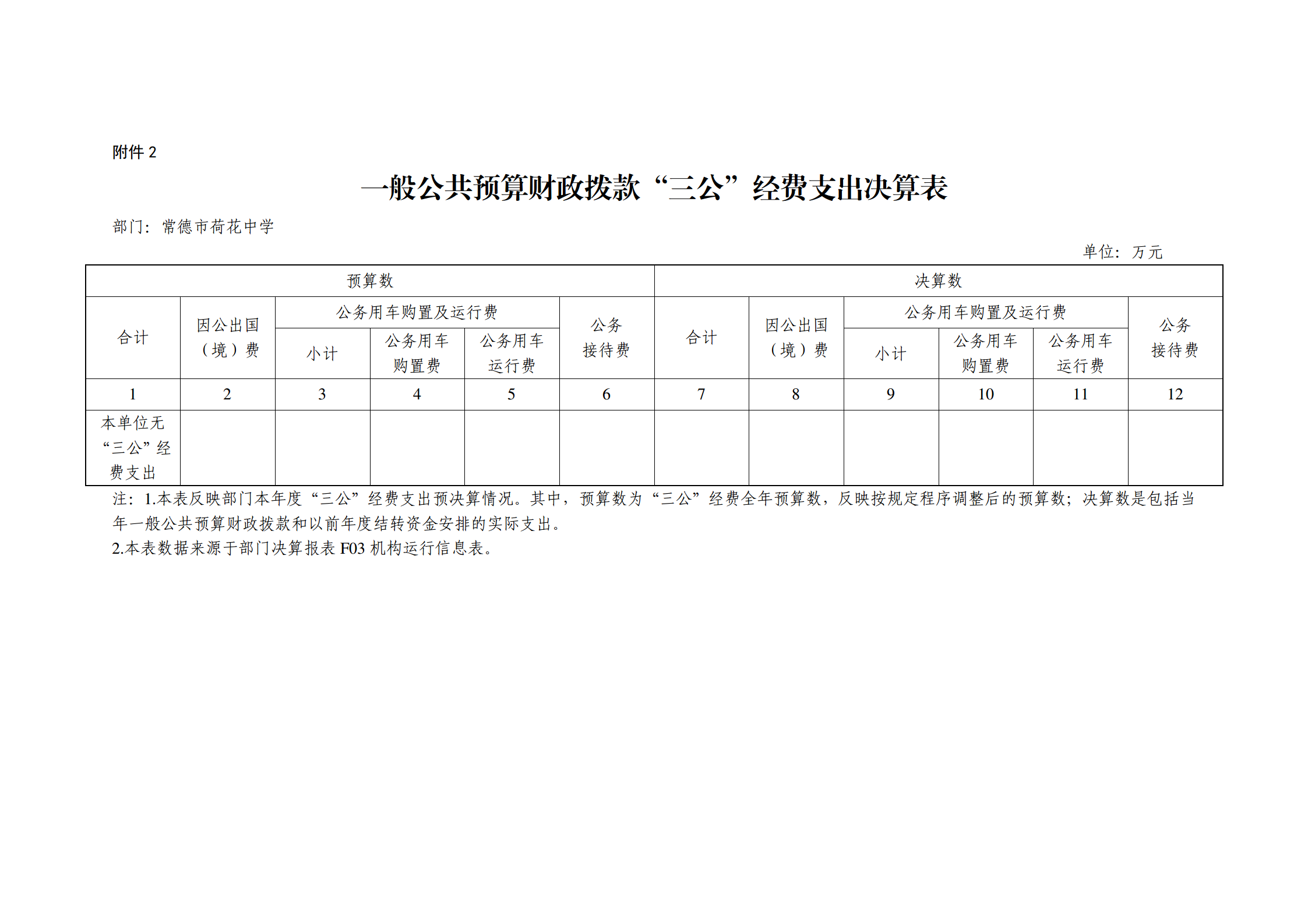 常德市荷花中学2021年一般公共预算财政拨款“三公”经费支出决算表