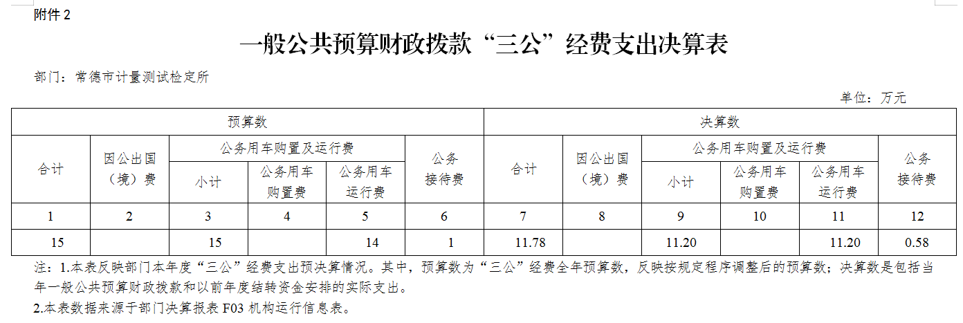 常德市计量测试检定所2021年一般公共预算财政拨款“三公”经费决算表